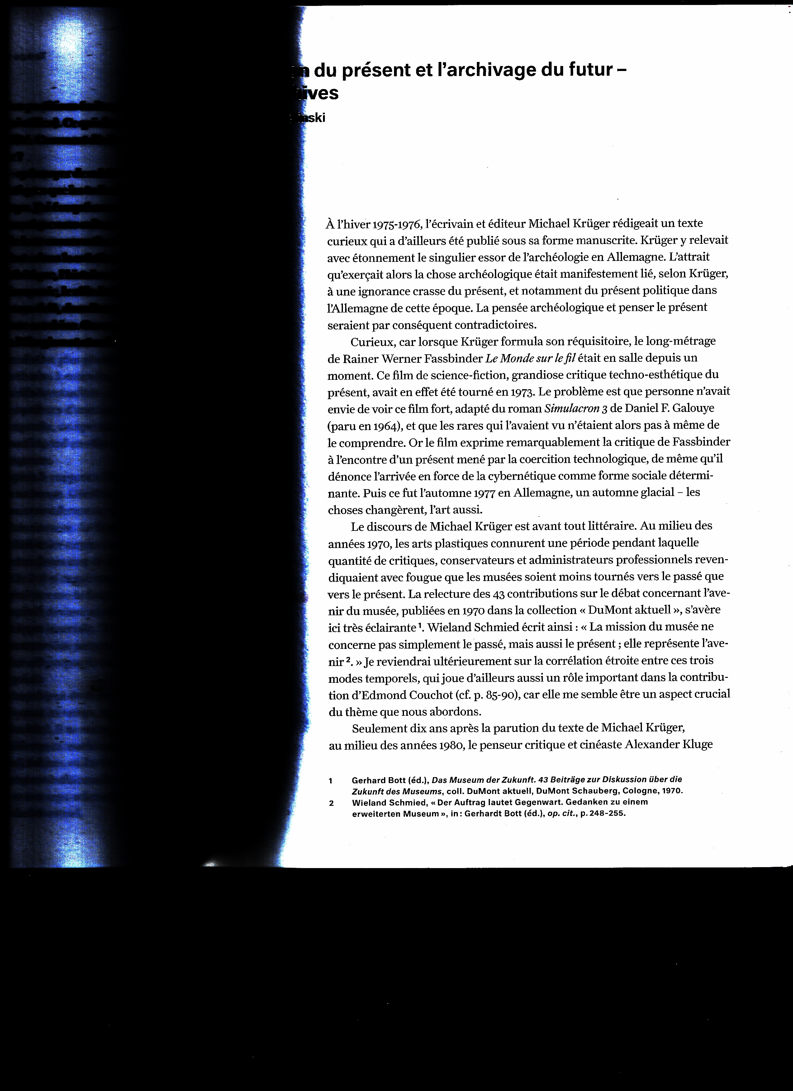 Le tournant numérique de l'esthétique est dans la logique de l’après-coup. Il nous permet de saisir à partir des œuvres et des pratiques ce qui n’est déjà plus et nous donne des outils pour comprendre l’actualité mouvante de notre monde, la complexité de nos expériences contemporaines. Et de prendre alors conscience des changements de la sensibilité et de l’inscription du numérique dans notre humanité même. Car ce monde numérique, c’est profondément et esthétiquement le nôtre.